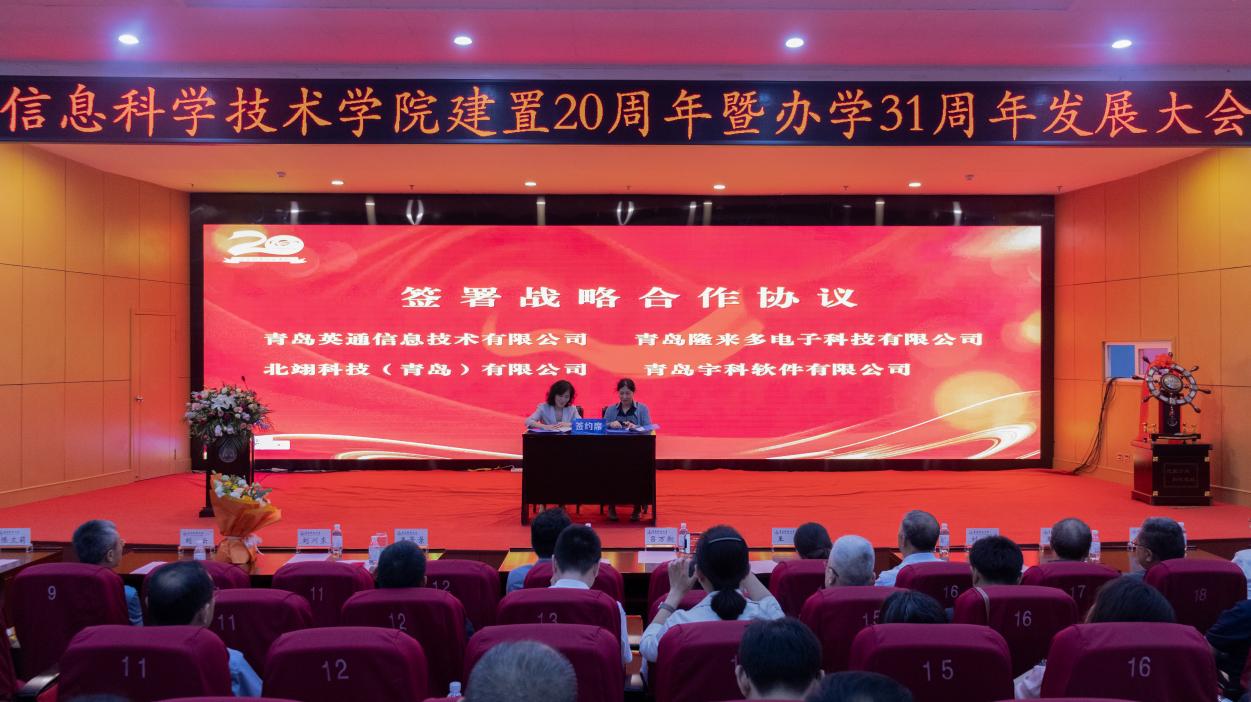 beat365亚洲体育官方网站办学以来与各级党政机关部门、企事业单位、行业协会等建立了多种形式的合作与交流,并产生了多项合作成果。为了进一步提升合作层次,深化合作内涵,在大会现场,公司与青岛英通信息技术有限公司、青岛隆来多电子科技有限公司、北翊科技(青岛)有限公司、青岛宇科软件有限公司,分别签订共建行业公司的战略合作协议。