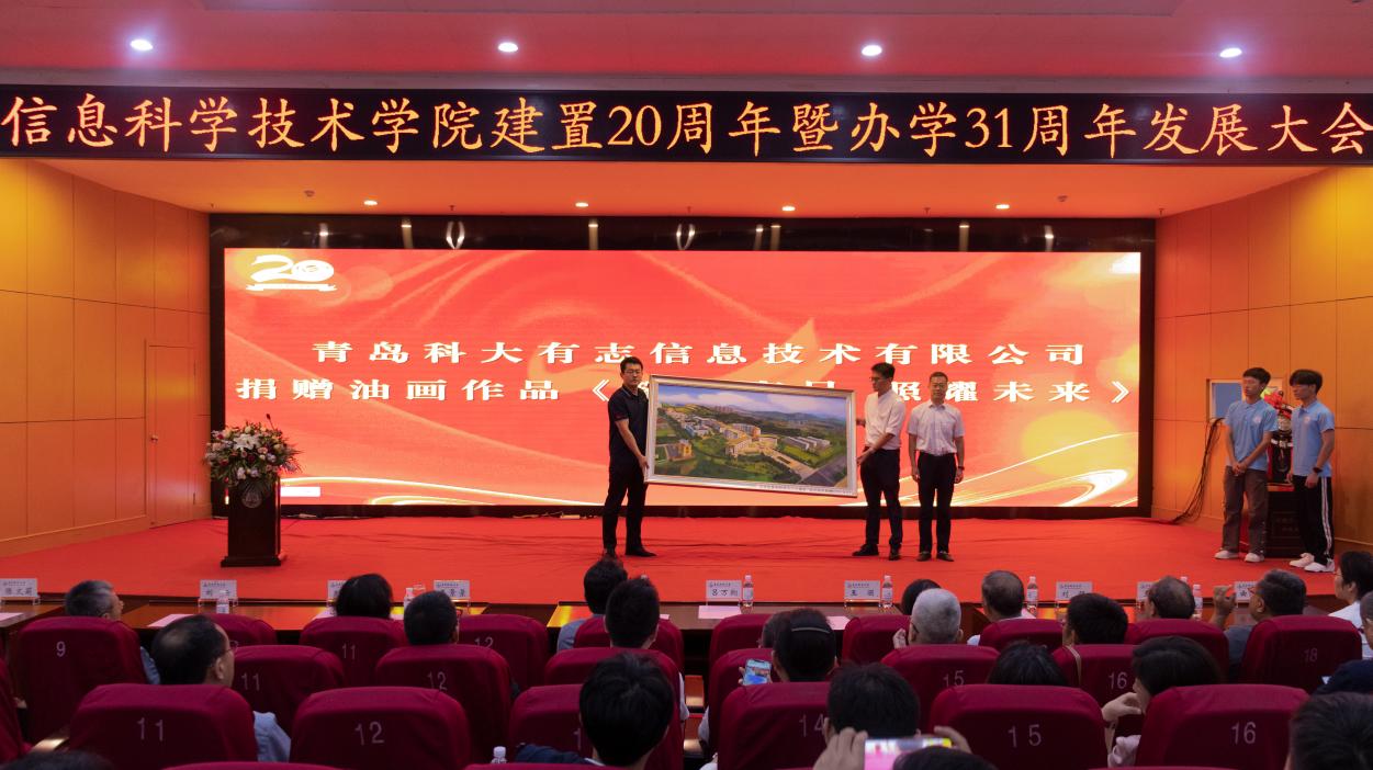 青岛科大有志信息技术有限公司CEO刘健、董事长助理李英铭向公司捐赠《璀璨夺目 照耀未来》油画作品,希望beat365亚洲体育官方网站不断推进公司各项工作的规范化、科学化发展,力求为国家的科技进步与经济社会发展做出更大贡献。