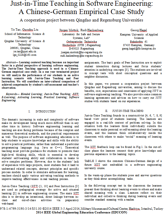 22、教研论文--Just-in-Time-Teaching in Software Engineering A Chinese-German Empirical Case Study