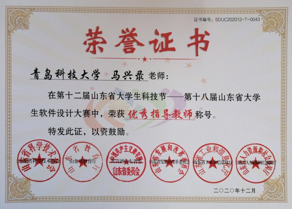 41、教师获奖--山东省老员工软件设计大赛优秀指导教师