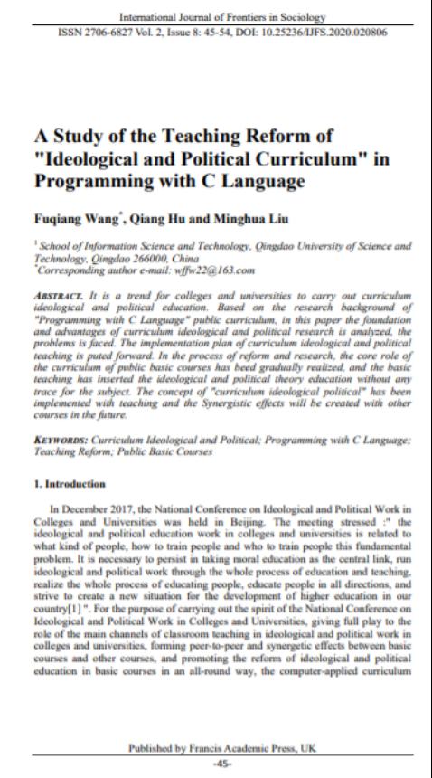 26、教研论文--A Study of the Teaching Reform of "Ideological and Political Curriculum" in Programming with C Language