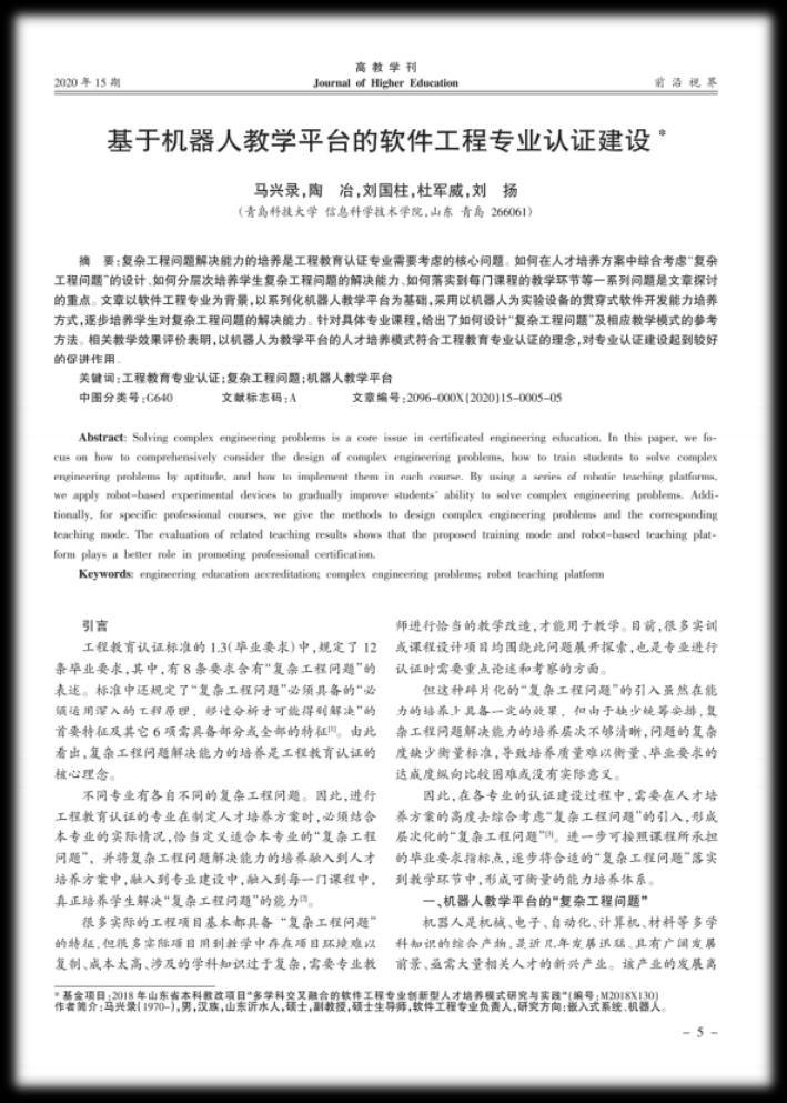 27、教研论文--基于机器人教学平台的软件工程专业认证建设
