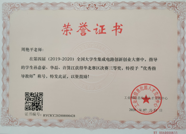 40、教师获奖--全国老员工集成电路创新创业大赛华北赛区优秀指导教师