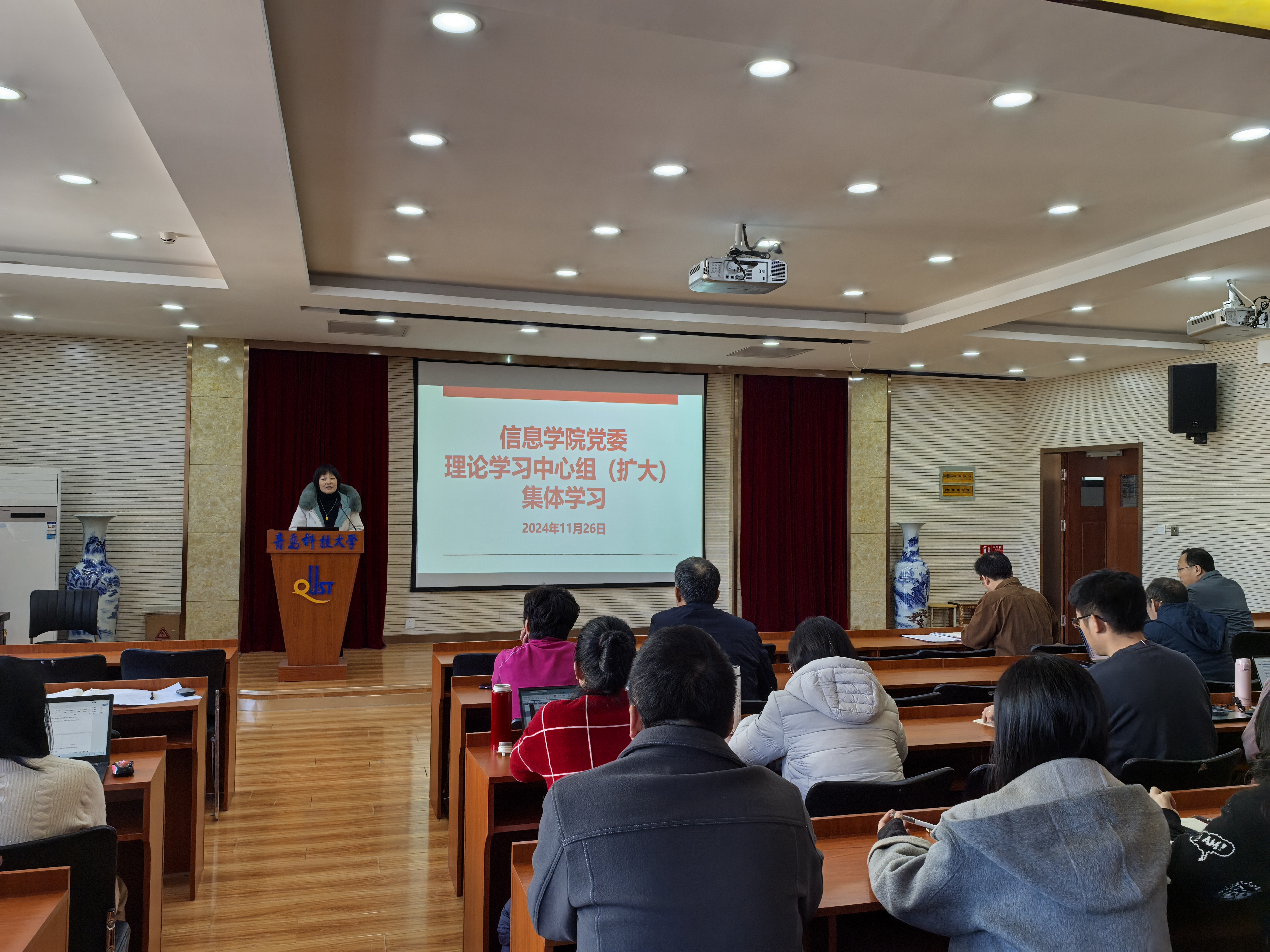 11月26日,公司党委理论学习中心组(扩大)举行了第十一次集体学习。本次学习特邀公司党委常委、统战部部长秦姣同志就新时代党的民族宗教政策进行专题报告,并就民族宗教工作提出具体要求。公司党委理论学习中心组成员、全体党支部书记、教学系主任及专职辅导员参加了此次学习,学习会由公司党委书记许桂锋同志主持。