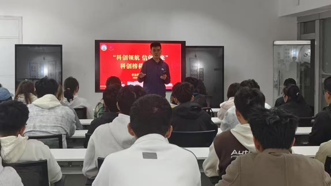 马庆万回顾了自己从竞赛“小白”到竞赛获奖者、科研参与者的蜕变历程。他勉励学弟学妹:“困境不是终点,而是起点;只要心怀梦想、脚踏实地,每个人都能在科创舞台上书写属于自己的精彩。”