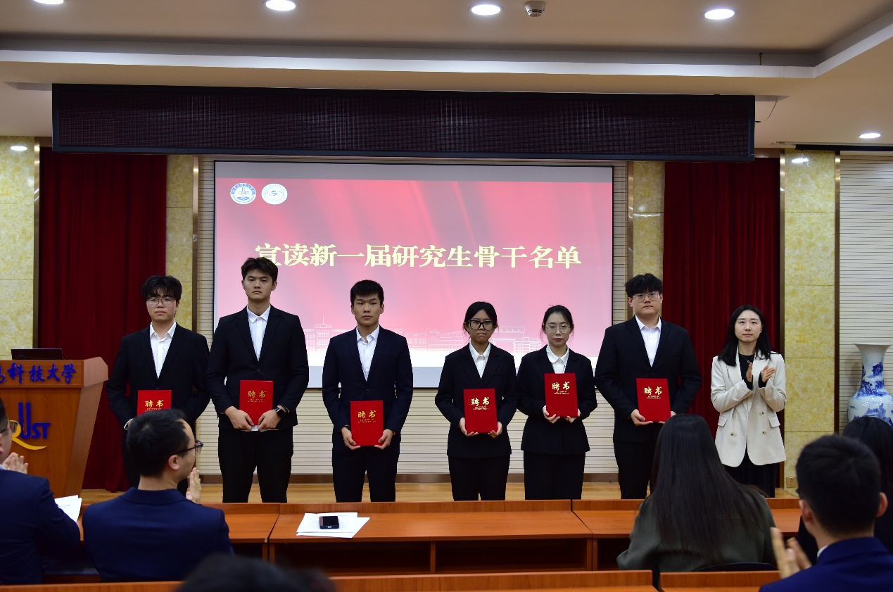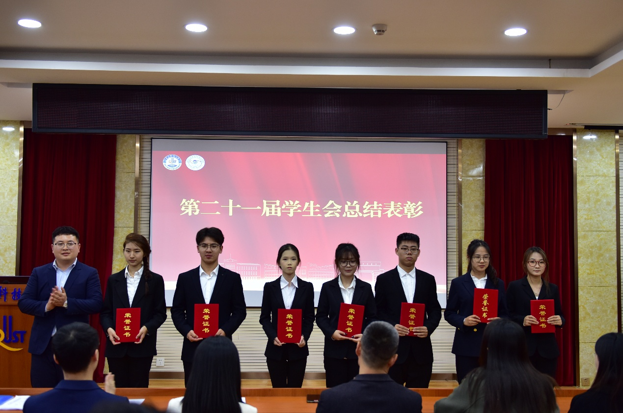 首先,员工会指导老师郝昱猛、研究生会指导老师屈会奇分别宣读了对第二十一届员工会、第五届研究生会的表彰决定,并为获得“优秀成员”和“优秀骨干”的同学颁发荣誉证书。