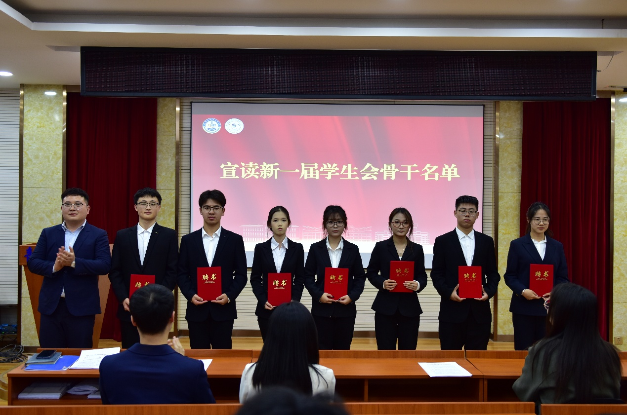 大会宣读新一届员工会、研究生会员工骨干名单,并为员工代表颁发聘书。